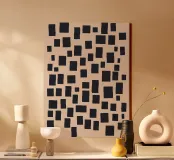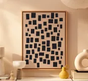 Ce design abstrait avec des carrés géométriques noirs sur un fond beige apporte une élégance moderne à votre intérieur. Le mariage harmonieux du noir et du beige confère au motif une esthétique chaleureuse et intemporelle, idéale pour tous ceux qui apprécient un style à la fois minimaliste et marqué. Parfait pour les tableaux muraux, les coussins, les tasses, les coques de téléphone portable et plus encore, pour donner du style aux espaces de vie. Un vrai coup de cœur pour les amateurs de motifs géométriques et de design contemporain.