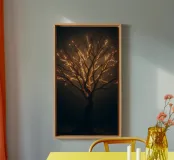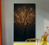 La silhouette saisissante d'un arbre dont les branches s'illuminent crée un motif abstrait et enchanteur adapté au papier peint. L'arrière-plan nocturne renforce l'effet lumineux.