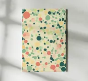 Cette œuvre d'art numérique abstraite et amusante présente un motif dense et aléatoire de cercles et de points qui se chevauchent. La palette inspirée de la modernité du milieu du siècle dernier utilise des couleurs ludiques telles que le rose corail, le jaune pâle, le vert citron et la sarcelle profonde sur un fond crème. La variété de taille et de couleur des points crée une texture joyeuse, semblable à des confettis, et un rythme visuel dynamique. Ce motif vivant est idéal pour ajouter une touche de charme rétro et d'énergie ludique à un salon, un bureau ou un espace pour enfants. Ce poster numérique de haute qualité (7000x5000 pixels, 300 dpi) garantit une reproduction parfaite des couleurs vives.