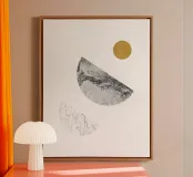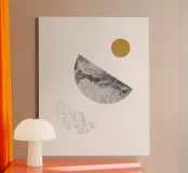 Adoptez l'élégance cosmique avec cet imprimé abstrait combinant des textures dorées et marbrées dans un motif inspiré du soleil et de la lune. Idéale pour les intérieurs modernes ou à thème céleste, cette œuvre d'art rayonne d'équilibre et de sérénité.