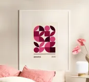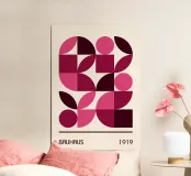Bauhaus Modular Abstract Print | Forme géométrique rose et prune hahnemühle