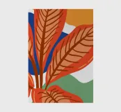 Découvre la beauté de ce motif de feuilles moderne et abstrait dans des tons orangés chauds, combinés avec du bleu, du vert et du jaune vifs. Ce motif artistique apporte une ambiance tropicale et une touche de nature dans ton intérieur. Parfait pour les tableaux muraux, les coussins, les coques de téléphone portable, les tasses et bien plus encore. Ce design respire la joie de vivre et le style et attire tous les regards. Idéal pour tous ceux qui recherchent une combinaison harmonieuse d'art, de nature et d'esthétique moderne.
