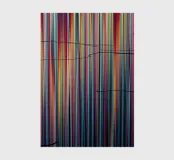 Cette œuvre d'art abstraite saisissante, "Vibrant Spectrum", capture un jeu dynamique de couleurs et de mouvements. Des lignes verticales de différentes largeurs dans une riche palette de bleus profonds, d'oranges ardents, de roses vifs et de jaunes subtils créent une texture rythmée, presque tissée. Des traits noirs audacieux et gestuels balaient la toile, interrompant les lignes ordonnées et ajoutant un élément d'énergie brute et de spontanéité. Cette pièce est une déclaration moderne et sophistiquée, parfaite pour ajouter une touche de couleur et un intérêt visuel à un espace de vie contemporain, un bureau ou un mur d'exposition.