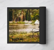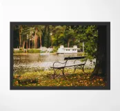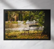 J'ai découvert ce banc isolé au bord d'un petit lac. J'ai pris cette photo au début de l'automne, alors que quelques feuilles vertes étaient encore accrochées aux arbres. Malgré cela, l'image transmet une belle ambiance automnale. Idéal comme poster sur le mur du salon ou de la chambre à coucher. Aussi comme décoration dans l'appartement ou la maison de vacances. :)