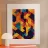 Motif abstrait cubique aux couleurs rétro poster avec cadre en bois
