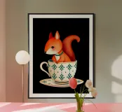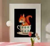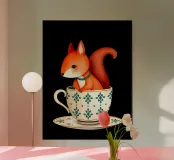 Illustration d'un mignon écureuil dans une tasse de thé.