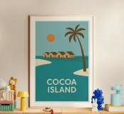 Laissez-vous séduire par cette affiche vintage de Cocoa Island, un véritable hymne au farniente et à la douceur des lagons turquoise. Parfaite pour apporter une touche d'exotisme et de sérénité à votre décoration intérieure. Des bungalows sur pilotis, une mer d’huile, un soleil couchant... tout invite au voyage.