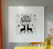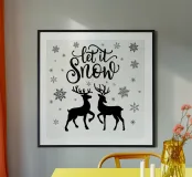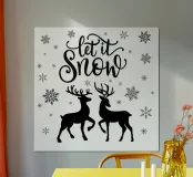 Motif de Noël moderne et minimaliste avec des flocons de neige stylisés, l'écriture "Let it snow", et un couple d'animaux amoureux, c'est-à-dire un cerf et une biche. Pour tous ceux qui aiment le romantisme de Noël, mais aussi le minimalisme moderne.