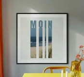 Un design aussi frais que l'air de la mer du Nord ! 🌊 Ce motif MOIN minimaliste présente le salut typique du nord de l'Allemagne avec une magnifique image de plage et de mer en arrière-plan - parfait pour tous ceux qui aiment les sensations de la côte.