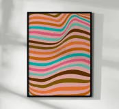 Ce design Retro Waves apporte du mouvement et du dynamisme dans chaque pièce. Des lignes fluides en orange, rose, marron et turquoise créent un rythme hypnotique, inspiré de l'art rétro des années 70 et de l'art mural abstrait moderne. Parfait pour tous ceux qui aiment les motifs géométriques, les illusions d'optique et le design intérieur coloré. Qu'il s'agisse d'un poster design, d'une impression d'art, d'une décoration de salon, d'une décoration pop art, d'accessoires d'intérieur modernes ou d'un point fort de la galerie murale, ce motif confère à chaque pièce une atmosphère créative et tendance et est idéal comme cadeau pour les amateurs d'art.