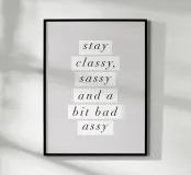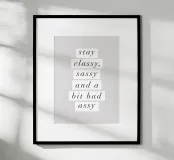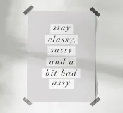 Stay Classy, Sassy and a Bit Bad Assy Monochrome Typography (en anglais) poster