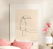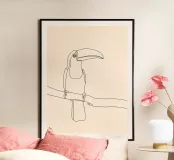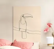 Dessin minimaliste d'un toucan perché sur une branche Parfait pour les amateurs d'oiseaux, les passionnés d'art tropical et les décorations murales modernes