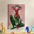 Une créature mystique se déploie sous nos yeux, qui semble avoir des racines profondes dans les esprits de la terre et les mythes de la forêt. La composition joue magistralement avec un spectre de couleurs vives composé de vert profond, de rouge saturé et d'or scintillant, qui s'épanouit sur un fond rose délicat. Les motifs de feuilles, en partie soulignés d'un ton doré vital, semblent pousser de manière organique à partir de l'être lui-même et lui confèrent une aura chamanique qui rappelle les ornements Art Nouveau ou Gustav Klimt. Un enrichissement fascinant pour chaque pièce, qui dégage une aura de mysticisme et d'élégance.
