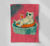 Une illustration fantaisiste et vibrante d'un ours polaire vivant sa vie au mieux - lunettes de soleil, cocktail à la patte, et flottant dans une piscine pour enfants avec une mini-cascade. Sur un fond tropical rose vif, cette œuvre d'art apporte une touche d'humour et de fraîcheur à n'importe quel espace. Parfait pour les amateurs d'art excentrique, d'esthétique rétro et d'attitude décontractée. Que ce soit pour votre salon, votre bureau ou votre maison d'été, cette œuvre garantit des sourires.