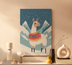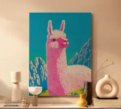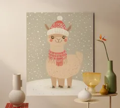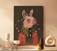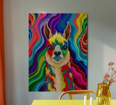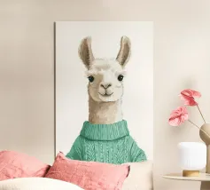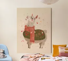 Joyeux lama avec foulard à rayures multicolores alu dibond
