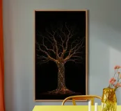 Arbre abstrait unique illuminé par des lumières scintillantes alu dibond