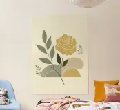 Dessin au trait minimaliste d'une rose jaune alu dibond
