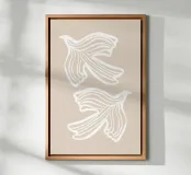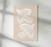 Minimalist artwork featuring fluid, swirling white lines of birds on a warm beige background. Ideal for contemporary and serene spaces.