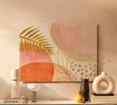 Des formes aquarelles aux couleurs chaudes et douces, parfaites pour ceux qui recherchent une combinaison de design organique et moderne. Avec des formes esthétiquement minimalistes et un mélange de beiges, de pêches, d'oranges, d'ombres et de terres cuites, cette œuvre d'art crée une atmosphère calme et accueillante.