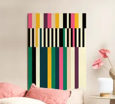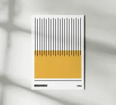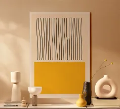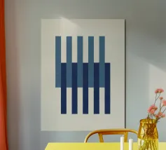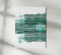 Une affiche abstraite équilibrée et minimaliste utilisant des contrastes marqués et une géométrie simple. La composition comprend deux blocs horizontaux de sarcelle profonde en haut et en bas, encadrant une bande centrale de blanc cassé. Les trois sections sont recouvertes d'un motif répétitif de fines lignes verticales noires, délibérément inégales et dessinées à la main. Ce motif oppose astucieusement les couleurs géométriques strictes à l'irrégularité organique des lignes, créant ainsi une esthétique classique inspirée de la modernité du milieu du siècle et du Bauhaus. Ce téléchargement numérique de haute qualité (7000x5000 pixels, 300 dpi) garantit une image nette et moderne.