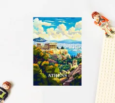 Entrez dans la majesté antique d'Athènes, en Grèce, avec cette impression d'art captivante de l'Acropole emblématique. L'image montre le Parthénon historique et les structures environnantes perchées au sommet de la colline accidentée, surplombant des ruines anciennes et un feuillage doré vibrant, le tout sous un ciel clair et azur. Ce poster numérique de qualité supérieure (7000x5000 pixels, 300 dpi) transmet magnifiquement la grandeur intemporelle et l'importance historique d'Athènes. Il est parfait pour ajouter une touche sophistiquée et culturellement riche à votre maison ou à votre bureau.