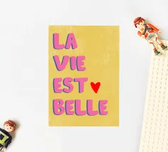 Embrassez le voyage de la vie avec cette impression d'art captivante "C'est La Vie". La phrase française, qui signifie "Telle est la vie", est représentée par une typographie audacieuse et ondulante dans des tons vibrants de vert et de violet, créant un effet dynamique, presque hypnotique. Les lettres sont entrelacées de formes organiques ludiques et d'étoiles subtiles, le tout sur un fond doux et complémentaire. Cette œuvre capture un sens du psychédélisme rétro philosophique, parfait pour ajouter une touche introspective et élégante à n'importe quel espace. Cet art numérique de haute qualité est présenté dans une résolution étonnante de 7000x5000 pixels à 300 dpi,