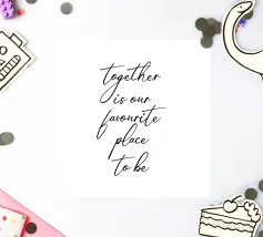 Un design charmant avec l'inscription "Together is our favorite place to be" dans une jolie écriture manuscrite. Une œuvre d'art qui s'adapte à tous les styles.