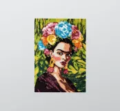 Découvrez Frida Kahlo réimaginée dans cette extraordinaire affiche d'art texturée, qui rappelle un travail à l'aiguille ou un perlage complexe. Ce portrait unique représente Frida avec son mono-sourcil emblématique et son regard intense, rendu avec un aspect tactile fascinant créé par d'innombrables petits éléments vibrants. Sa coiffe florale élaborée éclate avec des fleurs colorées en rose, bleu, orange et jaune, sur un riche fond vert feuillu. Cette œuvre d'art numérique de haute qualité, méticuleusement réalisée à 7000x5000 pixels en 300 dpi, offre des détails époustouflants et une expérience visuelle vraiment unique, parfaite pour une exposition.