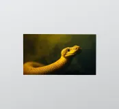 Le python jaune vif présente des écailles complexes et une expression curieuse, mettant en valeur son élégance dans un environnement faiblement éclairé qui rehausse ses couleurs vives.