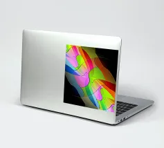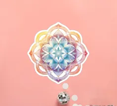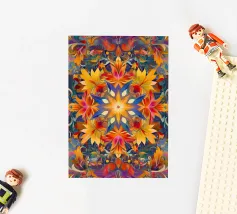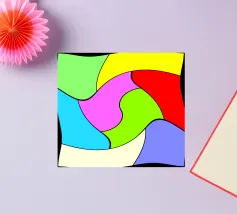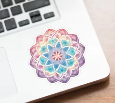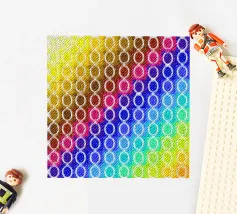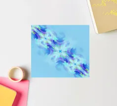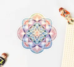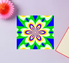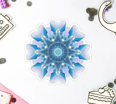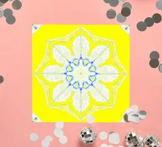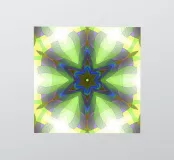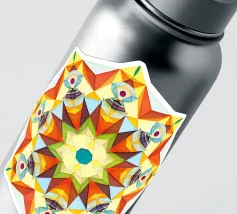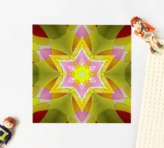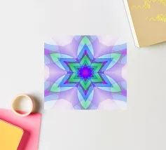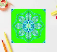 Étoile à 5 branches avec des formes décorées dans les couleurs vert-jaune-bleu.
