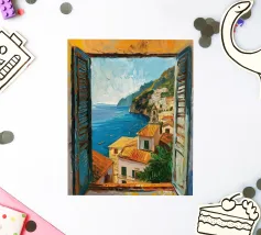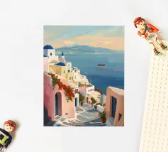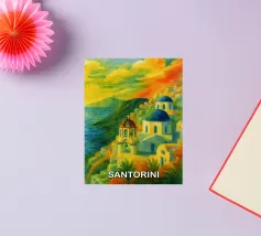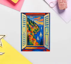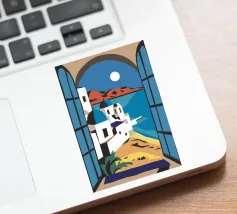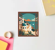 Fenêtre ouverte sur Santorin, île grecque de la mer Égée.