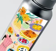 Stickers en film PP/PET avec laminage de protection et différentes structures de surface.