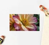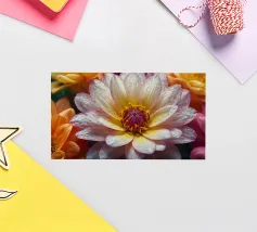 Cette fleur vibrante présente de magnifiques pétales roses et jaunes ornés de gouttelettes d'eau, scintillant dans la lumière chaude du soleil matinal au milieu d'une verdure luxuriante.