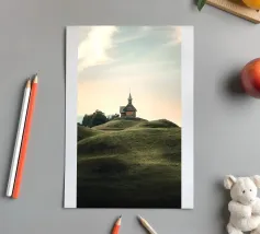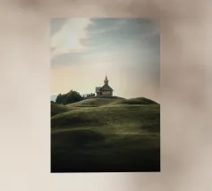 Entouré de prairies ouvertes et d'herbes qui se balancent, il surplombe la vallée en contrebas avec une grâce tranquille. L'air est calme, imprégné du parfum des fleurs sauvages et du chant lointain des oiseaux. La simple croix de la chapelle s'élève vers le ciel, symbole de sérénité et de solitude".