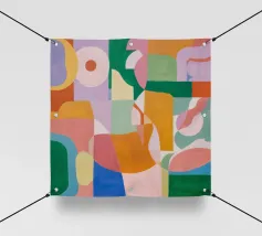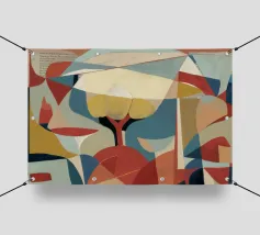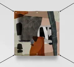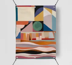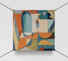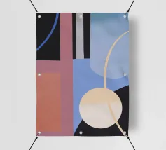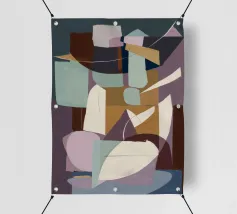Une abstraction géométrique composée de formes qui se chevauchent dans des tons froids et chauds. La composition joue avec l'espace et le vide, invitant le spectateur à interpréter sa tension architecturale et son espace négatif dynamique.