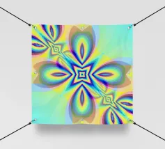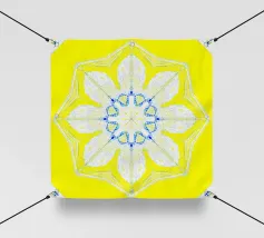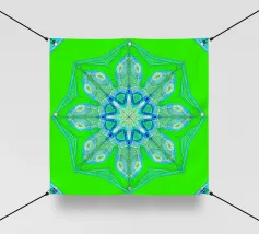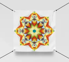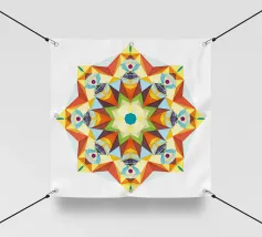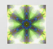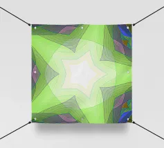 Étoile à 5 branches avec des formes décorées dans les couleurs vert-jaune-bleu.