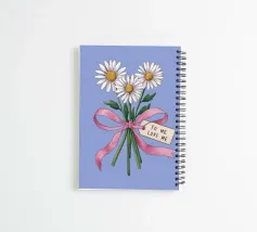 Une illustration douce et romantique d'un bouquet de marguerites blanches noué avec un ruban rose. Une petite étiquette portant la mention "à mon amour" y est attachée, ce qui en fait une représentation parfaite d'un geste romantique et sincère.