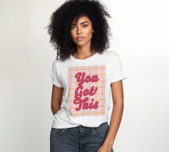 Faites-vous remarquer avec cette citation audacieuse et amusante "You Got This". Une typographie vibrante sur un fond moderne à carreaux.