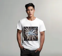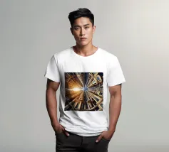Une représentation surréaliste de structures architecturales symétriques et imposantes convergeant vers une lumière centrale incandescente. Les motifs complexes, l'éclairage chaleureux et la perspective dramatique créent un visuel impressionnant et d'un autre monde.