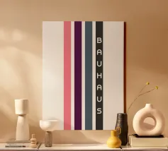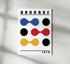 Ce motif Bauhaus abstrait au graphisme clair présente un motif rythmé de triangles et de carrés d'un rouge vif sur un fond crème chaud. L'agencement strictement géométrique crée un équilibre captivant de dynamisme et d'ordre et rappelle les principes classiques du design Bauhaus et Midcentury. Grâce à l'utilisation délibérée du contraste et de la répétition, le motif est à la fois moderne, intemporel et architectural. La palette de couleurs réduite confère au design calme et force, sans perdre de son expressivité. Idéal comme tableau mural pour le salon, poster design, art mural moderne.