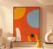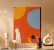 Ce design dynamique combine des couleurs vives comme l'orange, le bleu et le jaune avec des formes abstraites et des lignes fines. Le mélange de tons vifs et d'éléments minimalistes confère à ce motif une énergie et une vivacité particulières. Parfaitement adapté aux tableaux muraux, aux tasses, aux coques de téléphone portable ou aux coussins - un véritable accroche-regard dans toute maison moderne. Donnez à votre pièce une atmosphère fraîche et créative avec cette œuvre d'art unique.