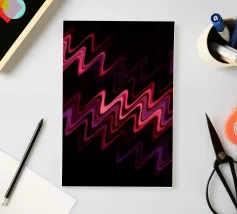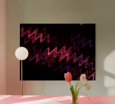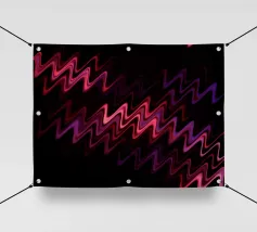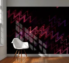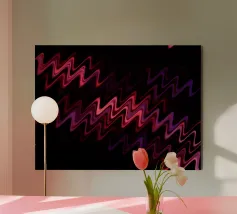 L'image montre des vagues et des motifs dynamiques dans les couleurs rose, violet et noir.