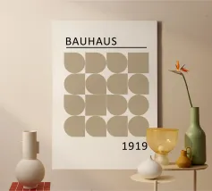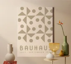 Plongez dans les principes fondamentaux du design moderne avec cette impressionnante impression d'art inspirée du Bauhaus. L'œuvre d'art présente une grille précise de formes géométriques minimalistes - des carrés, des cercles et un diamant central - dans une teinte beige terreuse sophistiquée. Ce motif incarne parfaitement la simplicité abstraite et la beauté fonctionnelle qui ont défini le mouvement emblématique du Bauhaus, fondé en 1919. Produit à une résolution impressionnante de 7000x5000 pixels et 300 dpi, cet art numérique de haute qualité garantit que chaque ligne nette et chaque nuance subtile sont rendues avec une précision exceptionnelle, ce qui en fait un objet idyllique.