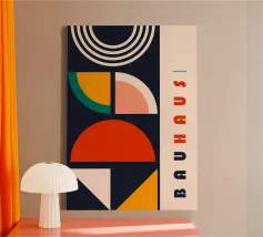 Plongez dans l'univers vibrant et structuré du Bauhaus avec cette captivante impression d'art abstrait. Le motif présente une composition complexe mais harmonieuse de formes géométriques imbriquées - cercles, quarts de cercle et carrés - dans une palette dynamique de jaune d'or, de bleu clair, de bleu marine profond et d'orange chaud. Cette pièce incarne parfaitement l'esprit d'innovation et la beauté fonctionnelle du mouvement Bauhaus, créant un motif visuellement stimulant, à la fois moderne et intemporel. Produit à une résolution impressionnante de 7000x5000 pixels et 300 dpi, cet art numérique de haute qualité garantit la qualité de l'image.