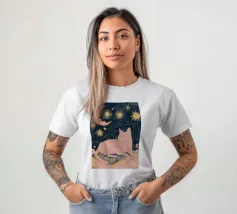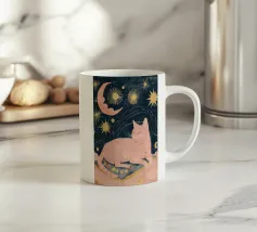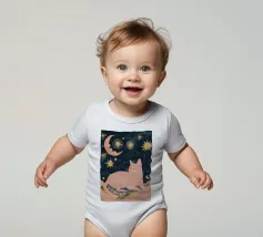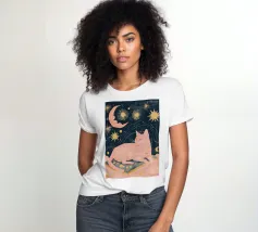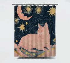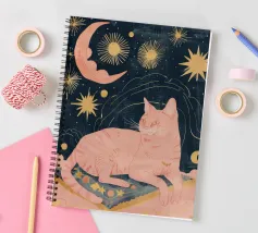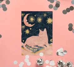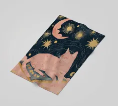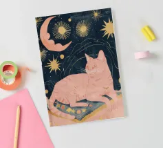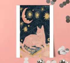Imprimé chat de bohème, imprimé lune céleste et étoile, animal boho