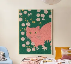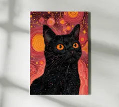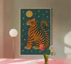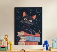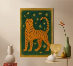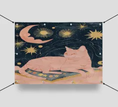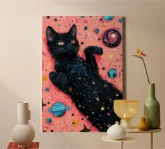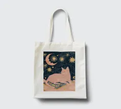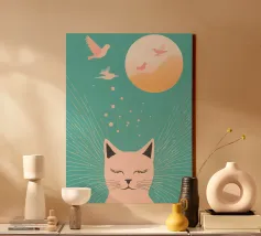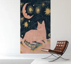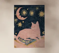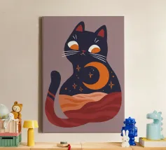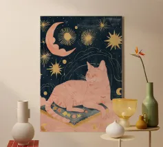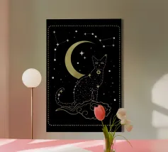 Imprimé chat bohémien, imprimé lune céleste et étoile, animal boho toile