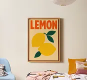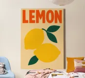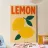 Deux citrons jaune soleil, accompagnés de feuilles d'un vert profond, brillent sur un fond chaud et crème. L'orange vif de l'inscription crée un contraste ludique et confère à l'image une touche de charme rétro. Minimaliste, frais et plein de bonne humeur - une déclaration graphique qui apporte l'été et la vivacité sur chaque mur.