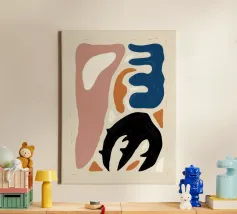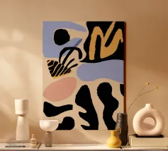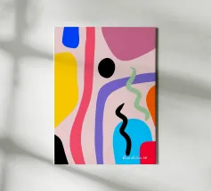 Ce design frappant combine des lignes courbes en noir avec des accents de couleurs vives en bleu, rouge et jaune. La combinaison de contrastes et de formes vivantes fait de ce motif un véritable accroche-regard. Parfait pour les amateurs d'art moderne et de styles boho, il confère aux peintures murales, coussins, tasses ou coques de téléphone portable un dynamisme et une créativité uniques. Que ce soit pour la maison ou comme cadeau inspirant, ce design apporte une expression artistique à tout environnement.