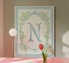 Motif aquarelle personnalisable - Initiales & Nom Art toile
