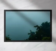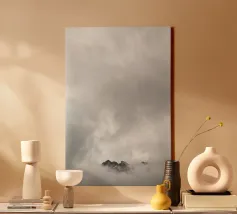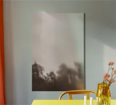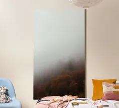Paysage brumeux avec des arbres, créant une atmosphère apaisante toile